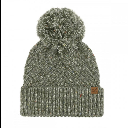 C.C. Olive Criss-Cross Pattern Yarn Beanie