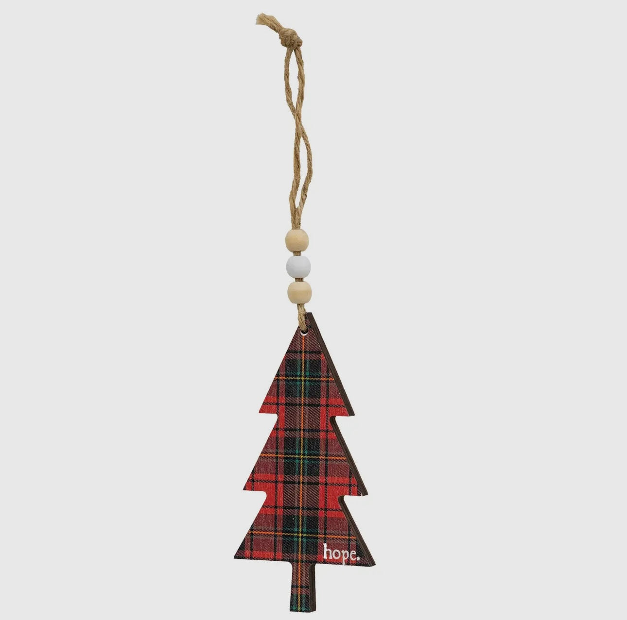 Hope, Love, Joy Plaid Christmas Tree Ornament